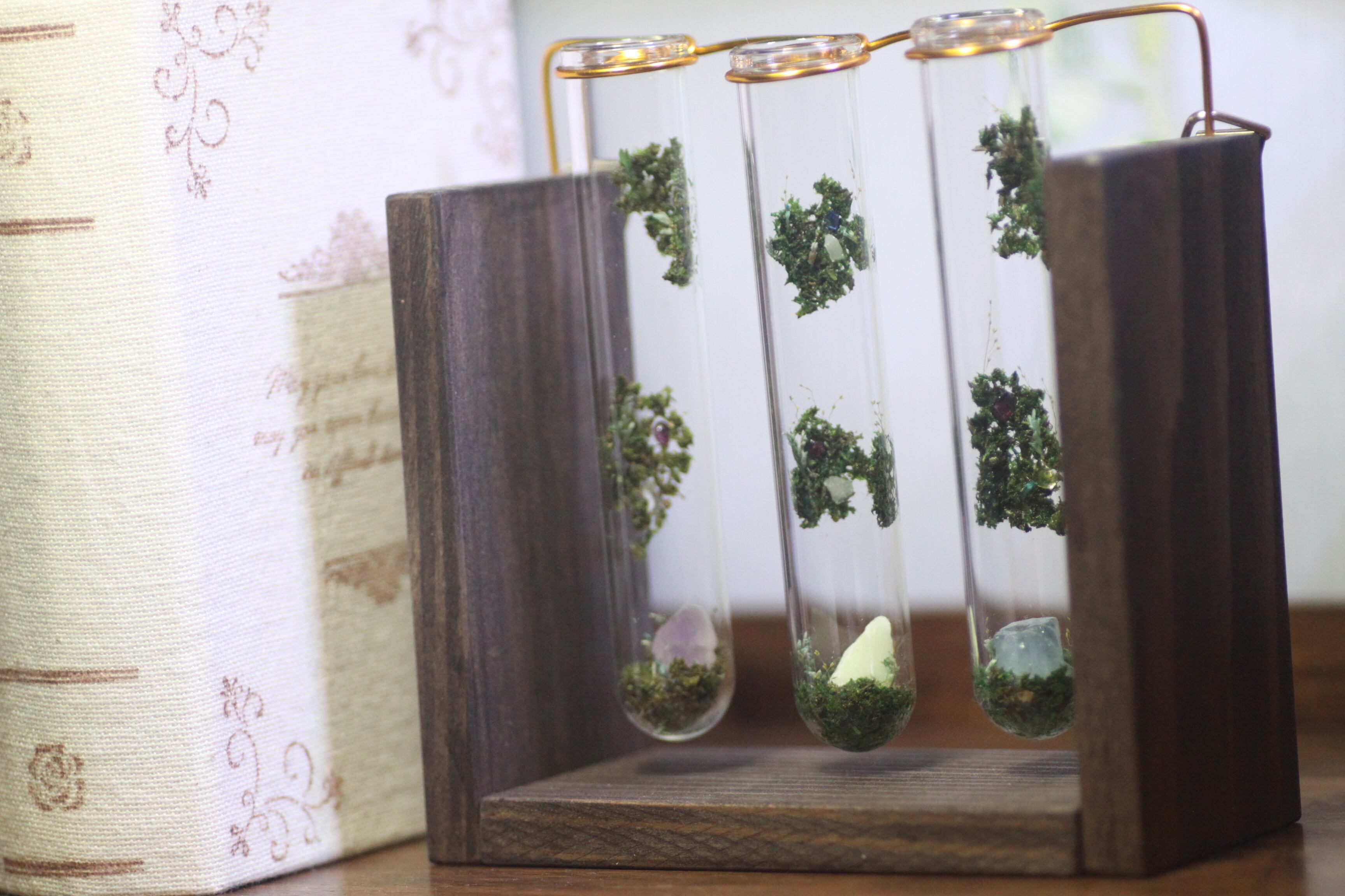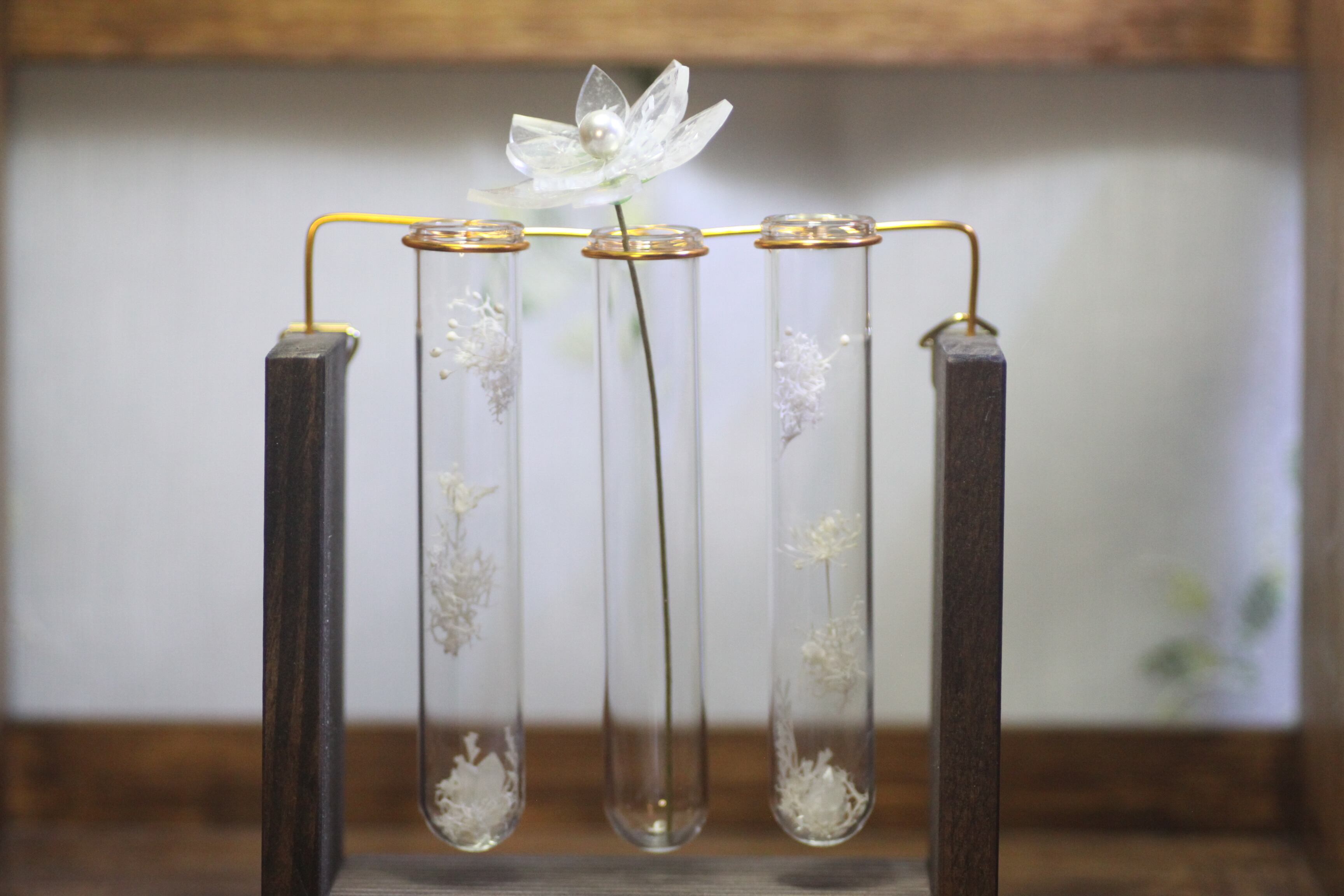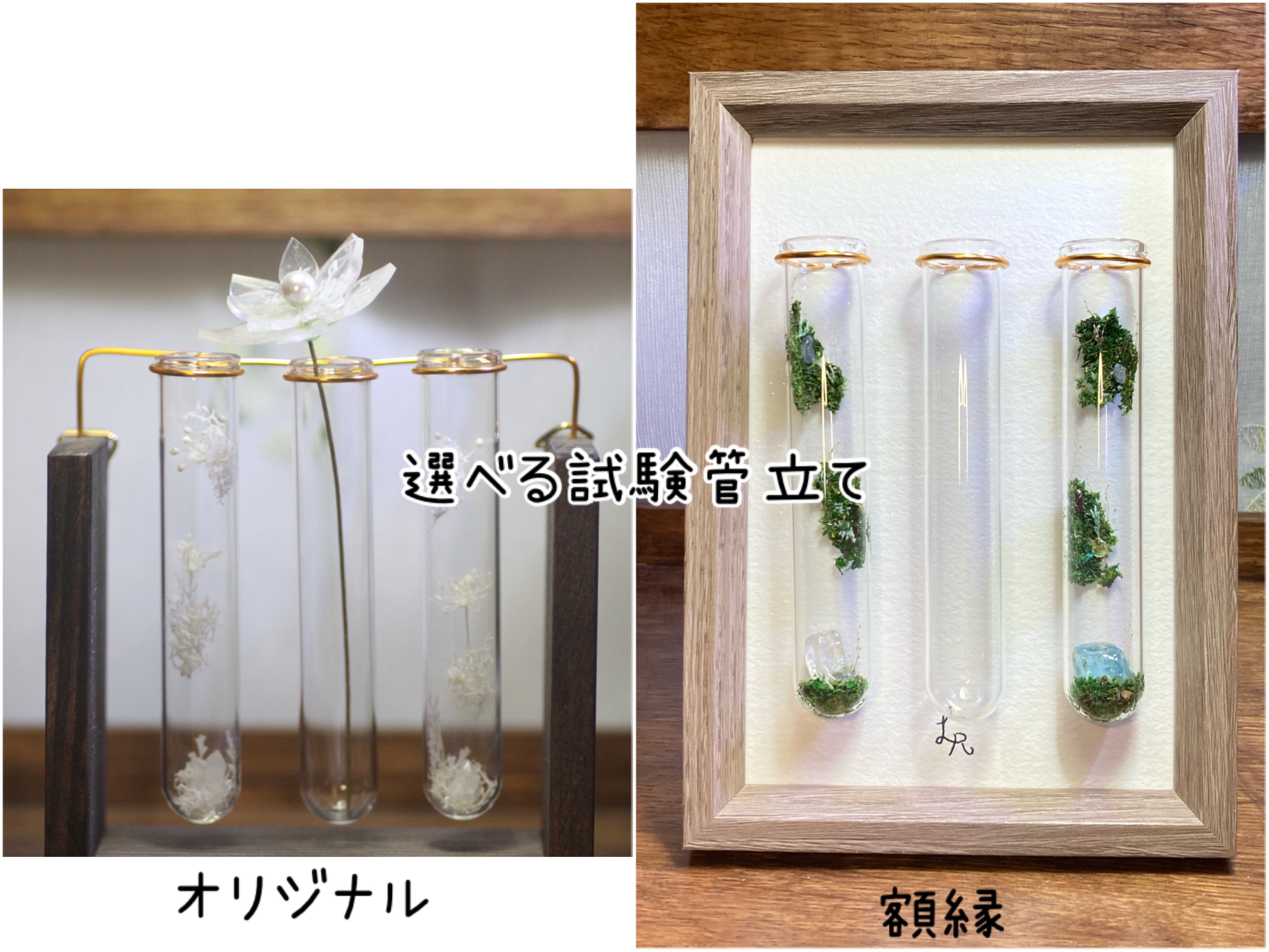 〔試験管立て額縁orオリジナルスタンド・試験管2個セット・空の試験管1・雪霜〕