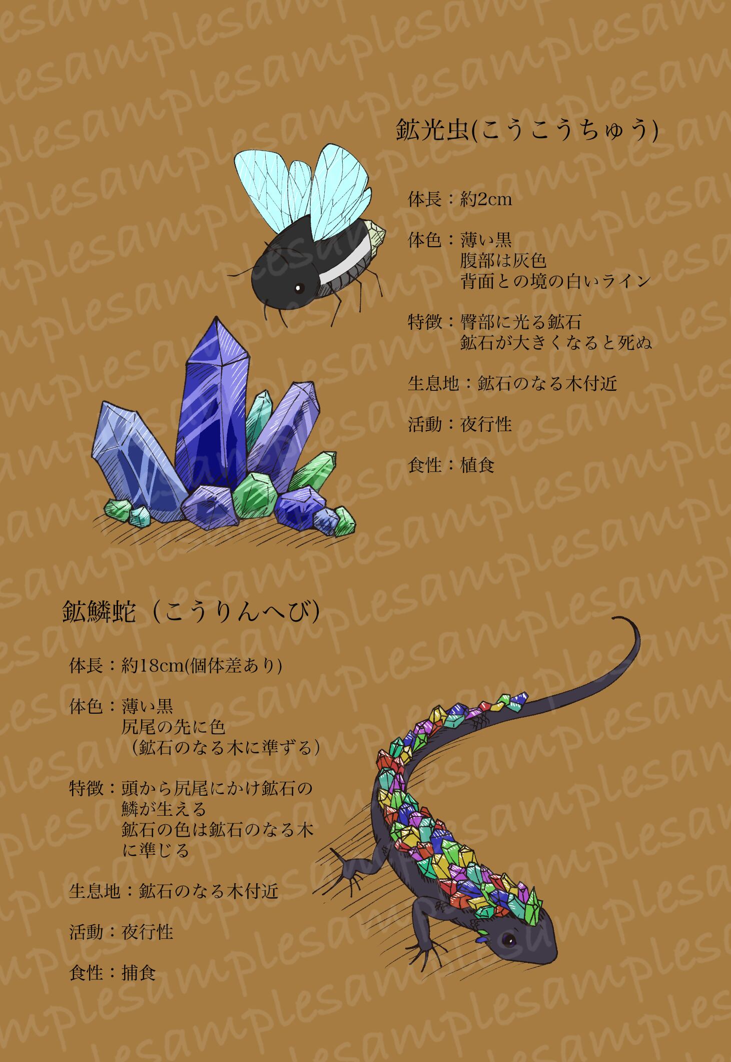 創作生物達の設定を簡易的にまとめたイラストカードです。 ・鉱鱗蛇と光鉱虫 【大きさ】 14.8×10.0(cm) 【発送】 厚紙での折れ防止を施し手の発送です。