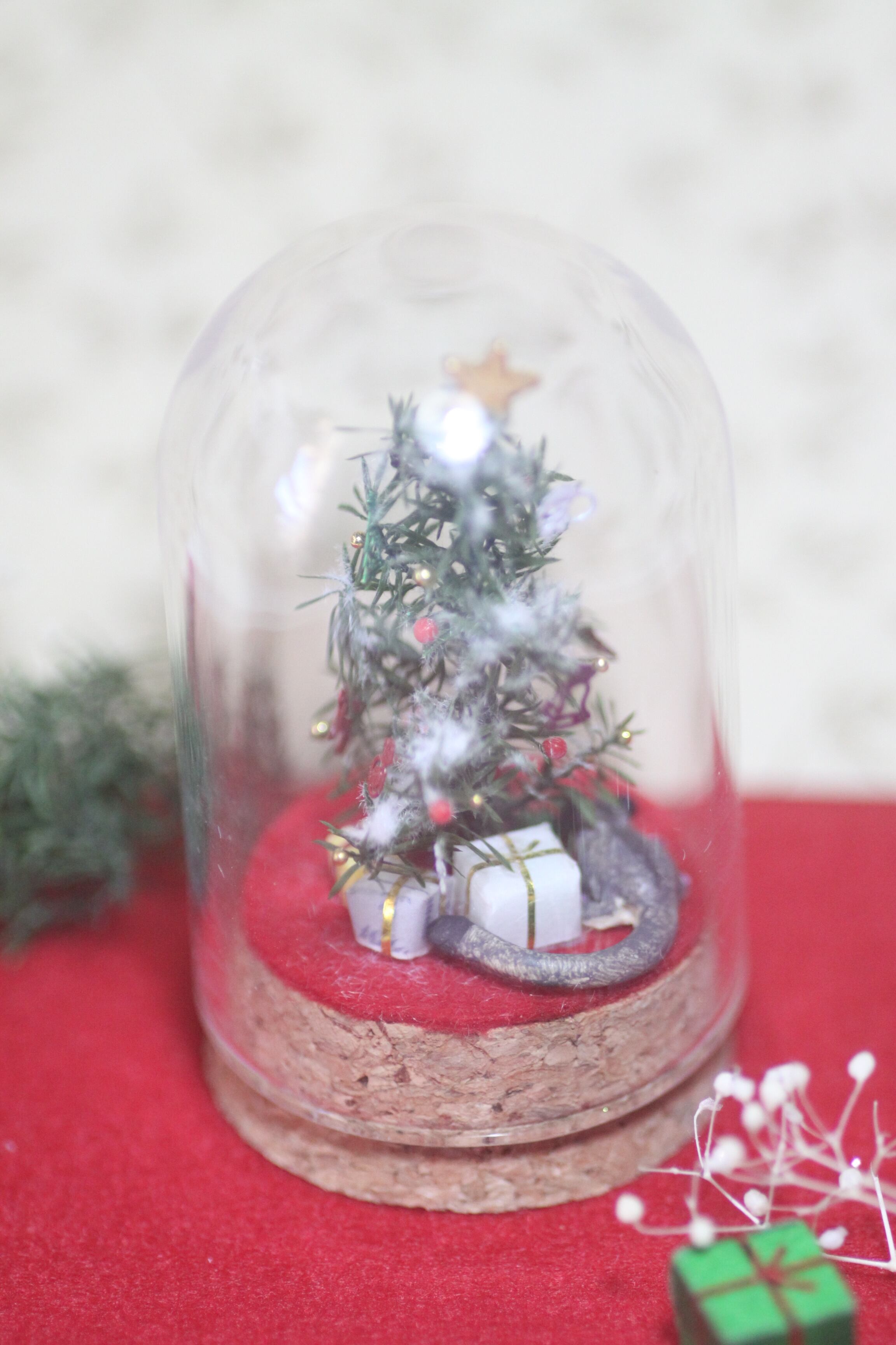 クリスマス使用のモモンガガラスドームはすべて1点ものとなっています。