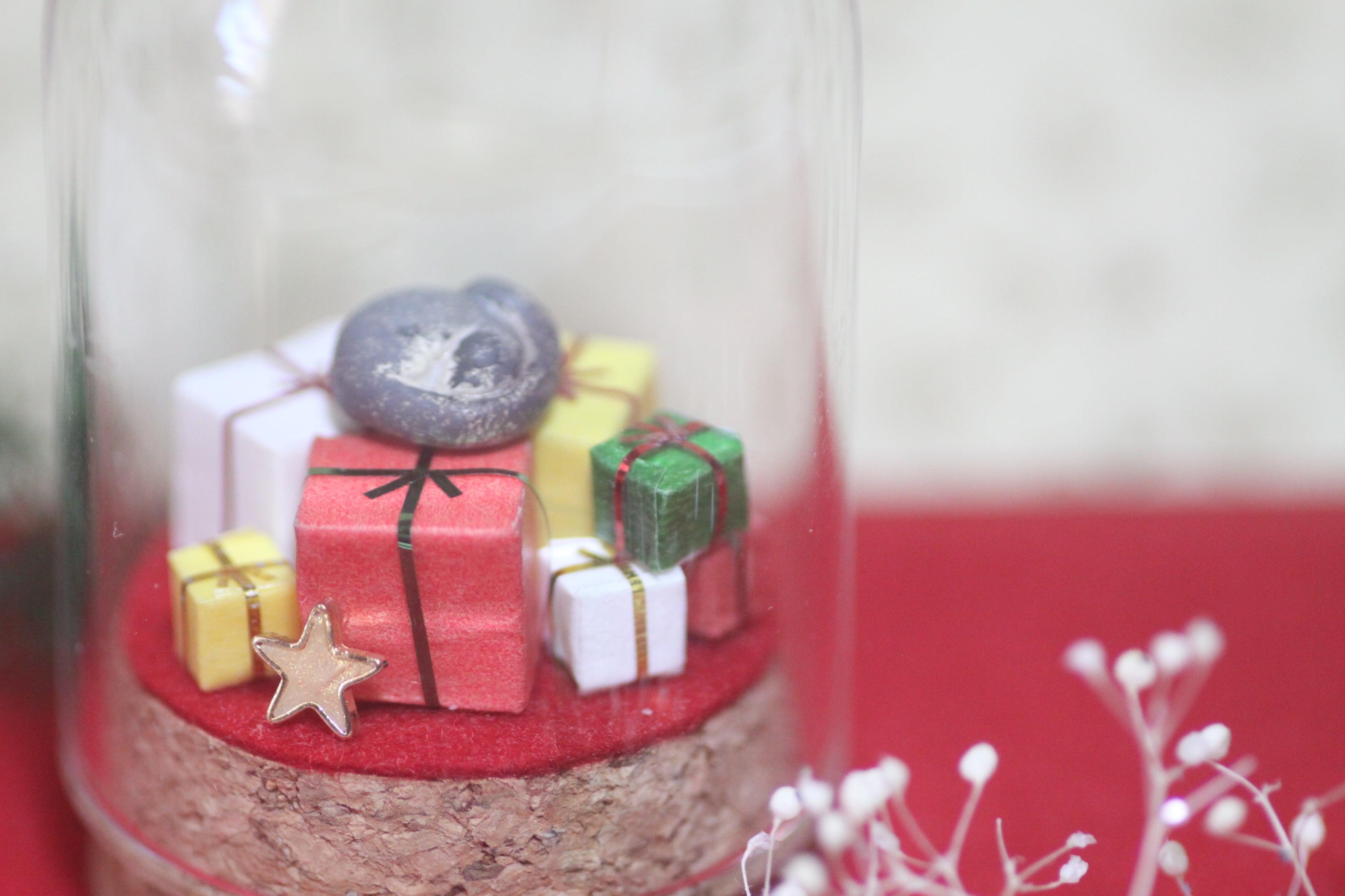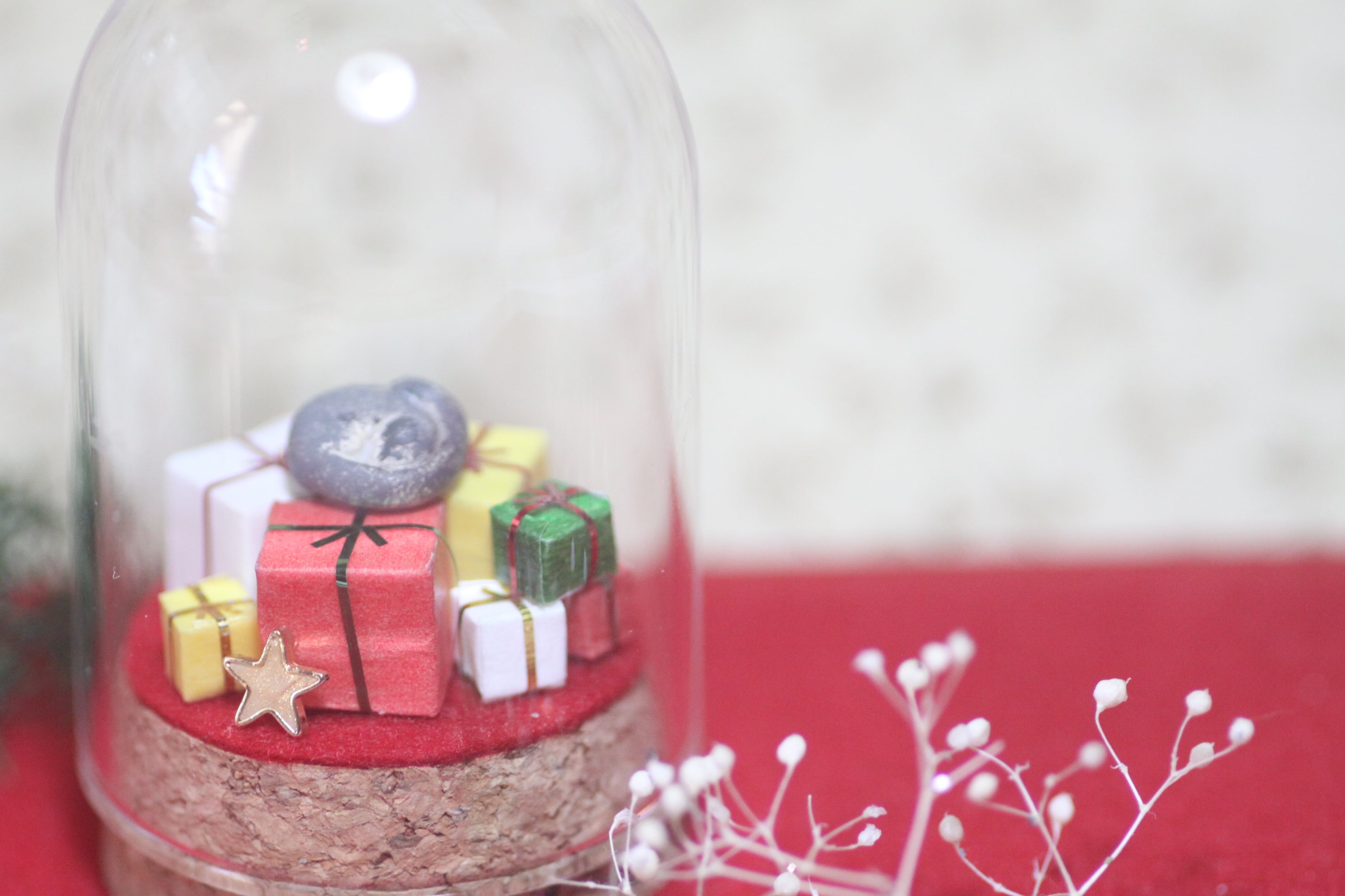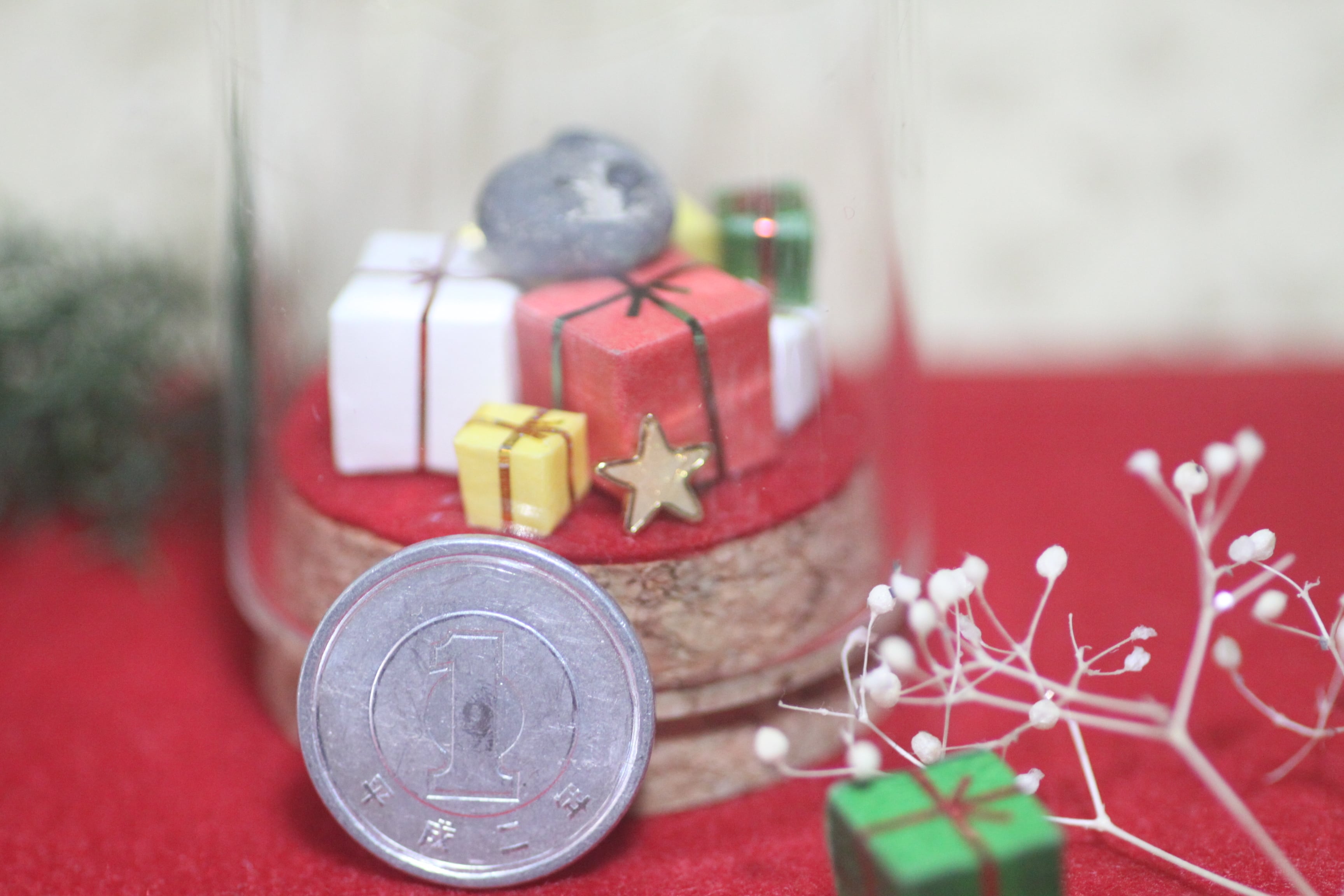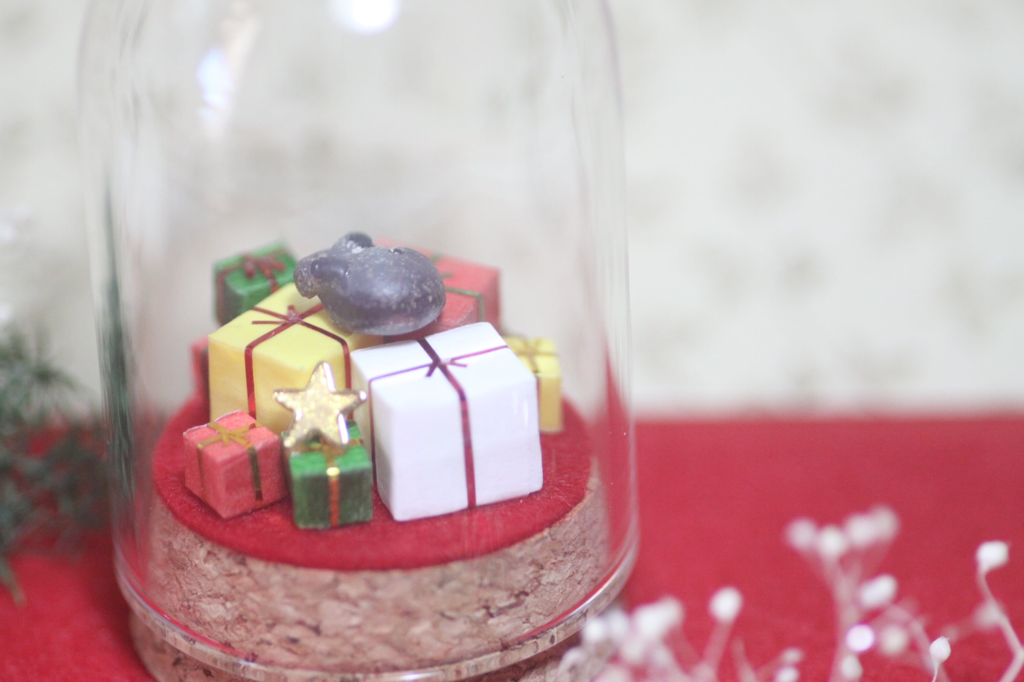 クリスマス使用のモモンガガラスドームはすべて1点ものとなっています。